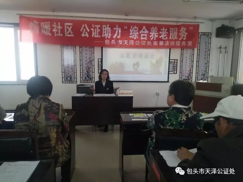九九重阳艳阳照,浓浓敬老法律情,为了弘扬尊老爱老的传统美德,切实增强老年人维权意识,了解更多的养老措施,营造全社会关爱老年人的良好氛围,近日,在我国传统佳节重阳节来临之际,包头市天泽公证处家事法律服务室陆续深入家事法律服务室所在社区及辐射的周边社区开展普法讲堂、普法宣传活动,宣传与老年人息息相关的法律知识,大力推广包头市天泽公证处惠民、利民服务老年人的举措。
