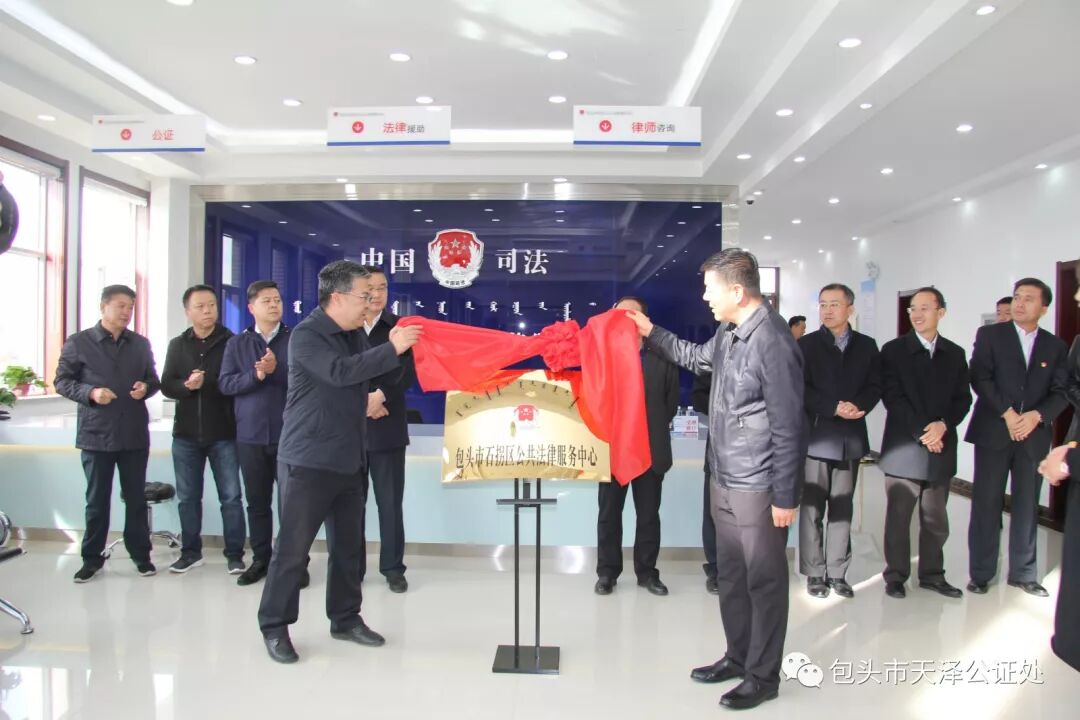 2018年11月7日,包头市石拐区公共法律服务中心正式揭牌成立。包头市司法局党组书记、局长武建民、包头市司法局党组成员、副调研员呼建国、包头市司法局法律援助科副科长刘亚宁、石拐区区委副书记白相工及区委常委、区政府、区人大、区政协相关领导、昆区司法局党组书记、局长贺青、包头市石拐区司法局党组书记、局长刘晓明等领导出席揭牌仪式。