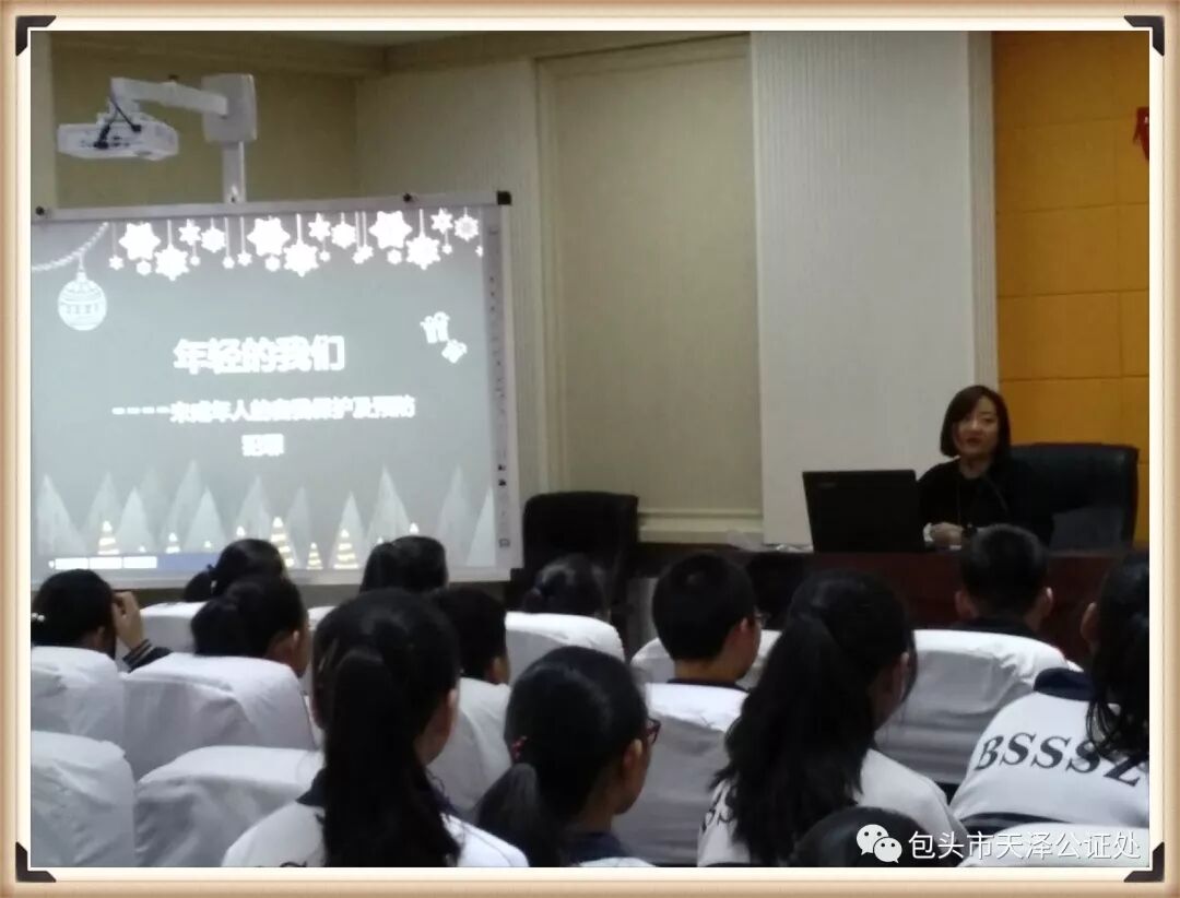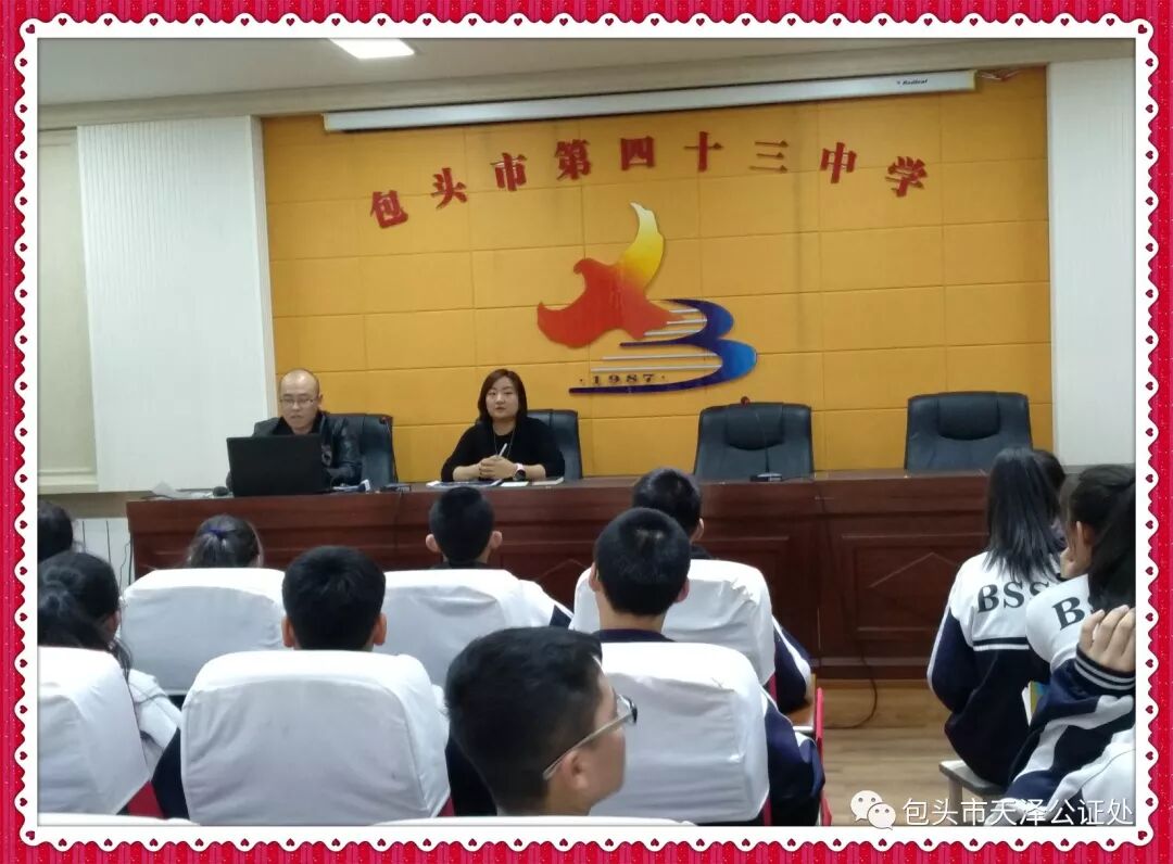 法制教育要从学生抓起。包头市天泽公证处在依法履职尽责的同时,还努力承担起义务普法的社会责任。送法进校园不仅增强了学生们的自我保护意识,构建了和谐的校园环境,而且还为大力弘扬宪法精神,维护宪法权威,引导全社会形成自觉维护宪法权威、捍卫宪法尊严、保证宪法实施的良好氛围添砖加瓦。