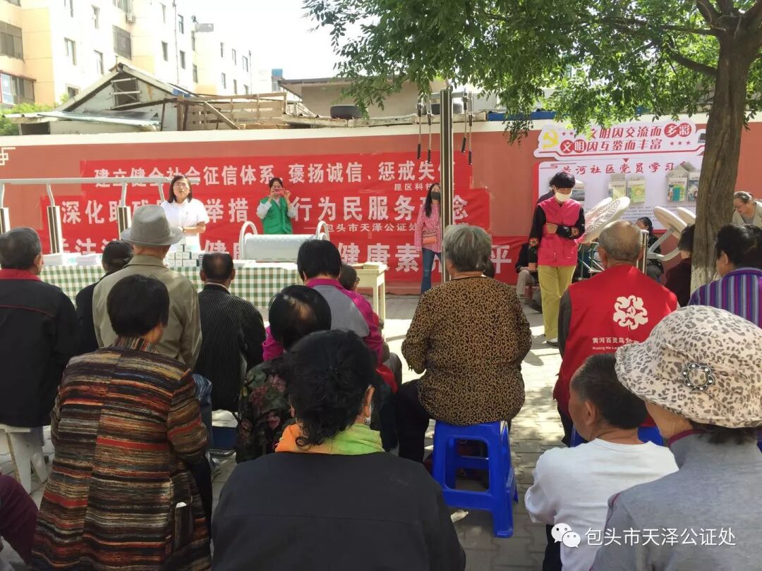 阿十小区普法讲堂 讲座中,业务三部部长、公证员于燕敏以《中华人民共和国残疾人保障法》及相关法律、法规为授课重点,结合当前残障人士维权现状,就残障人士医疗纠纷、伤害赔偿等突出问题,为现场居民进行了讲解,并介绍本月为包头市天泽公证处助残服务月,处内针对残障人士推出了一系列便民服务举措。现场居民还就自身存在的遗嘱、房产继承、子女赡养、婚姻家庭等问题予以询问,于燕敏凭借专业的法律知识和丰富的办证经验给予耐心解答。 “包头市天泽公证处开展的全国助残日活动真的很有意义,增强了残障人士自我保护意识,提高了用法律手段维护自身合法权益的能力!”居民王大爷说。据统计,两次普法讲堂共发放普法刊物《天泽公证》《便民手册》300余册,《中华人民共和国残疾人保障法》100余册,解答群众咨询20人次。 黄河四区现场开展普法讲座 两次普法讲座活动,切实增强了残障人士法治意识和依法维权能力。在全社会营造了关爱残障人士的良好氛围,为有效地保障和维护残障人士合法权益,推动社会和谐稳定发展,提供了良好的法治环境。