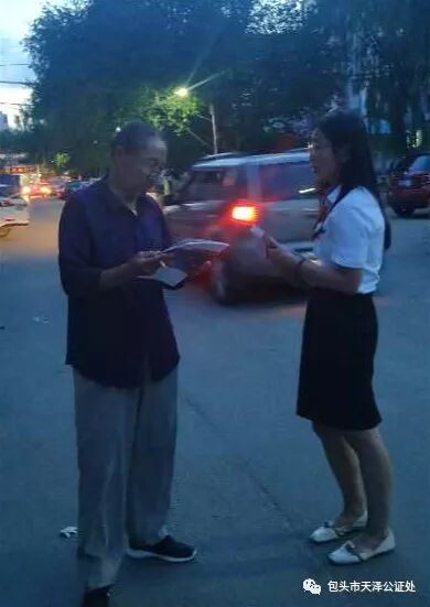 为依法打击黑恶势力犯罪,提升人民群众安全感和满意度,普及涉黑涉恶犯罪法律知识,征集涉黑涉恶犯罪线索,2019年7月4日晚,包头市天泽公证处业务一部法律志愿者深入花园小区开展扫黑除恶普法宣传活动。