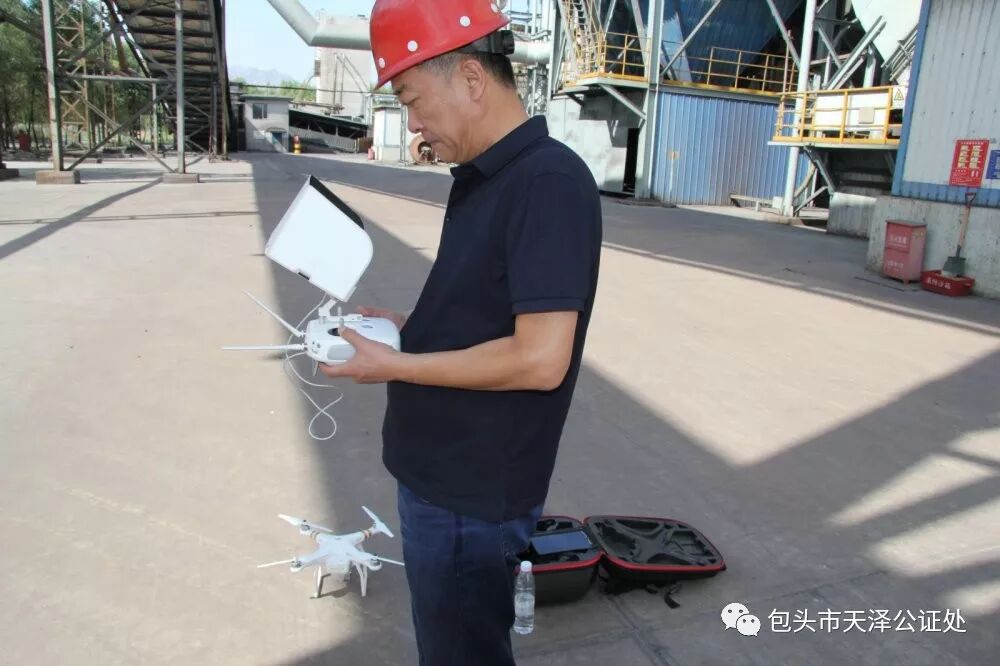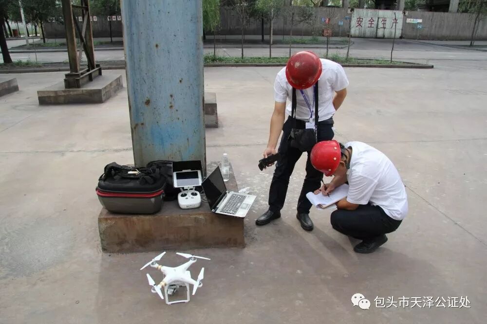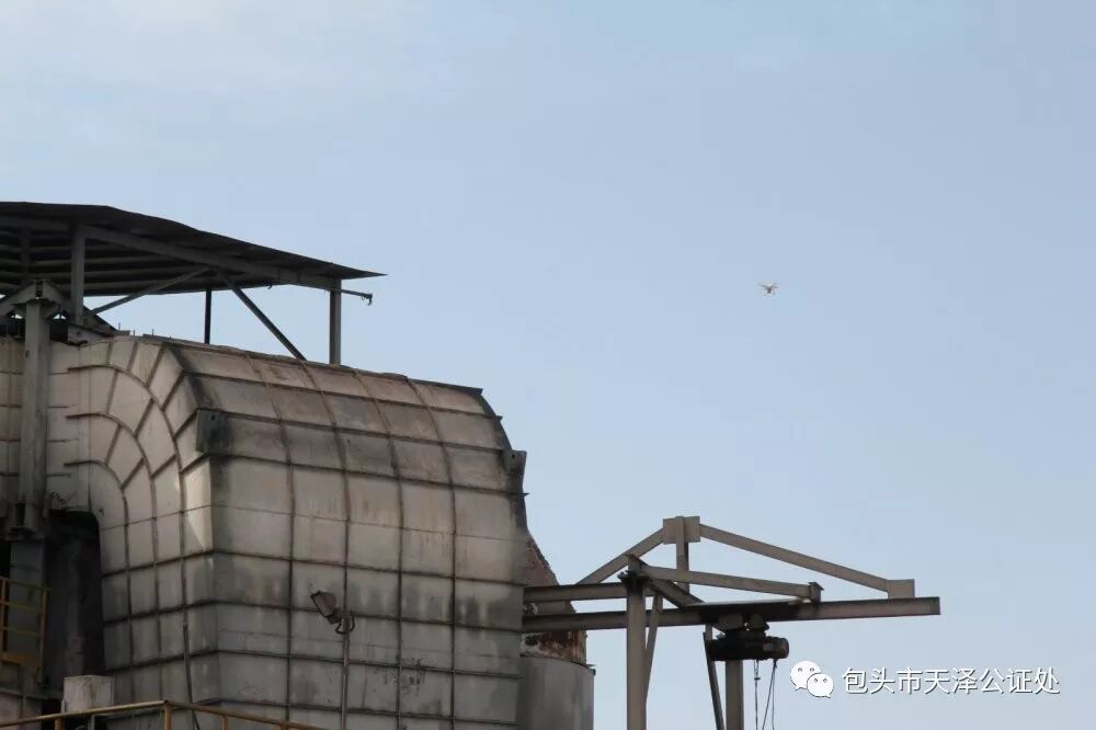 “原本可能要一天才能完成的工作,现在用无人机几趟来回就能轻松搞定了。” 包头市天泽公证处在内蒙古自治区公证行业首次启用无人机航拍进行取证,办理证据保全公证。近日,我处受理了某公司的证据保全公证申请,按照申请人的需求,我处需对申请人已施工完毕的某工厂管道现状进行保全。因申请人系向发包方提供管道漆面涂饰服务,按照要求,所涂饰油漆为耐高温油漆,可在施工完毕之后,管道运行过程中部分漆面发生了褪色,申请人需按照发包方的要求尽快重新涂饰。为了固定证据,申请人申请对所施工部分进行现状保全。经与申请人的委托代理人询问后得知,需保全的整个管道施工区域4000多平方米,管道布局庞杂,全部处于运行状态下。 管道运行期间处高温状态,还有部分问题管道分布在高处,现场没有其他建筑可提供拍摄支持,如果采用云梯或吊车等方式进行,需协调各方,人员安全也存在隐患,且发包方要求尽快重新涂饰,没有过多时间进行协商,如何取证成为摆在公证员面前的一道难题。 我处公证员王茂与申请人的委托代理人协商之后,大胆创新,提出使用无人机航拍取证与传统取证方式相结合的保全方案。