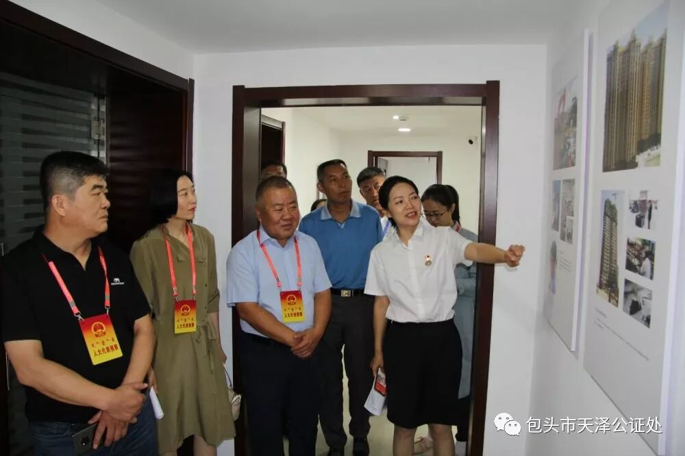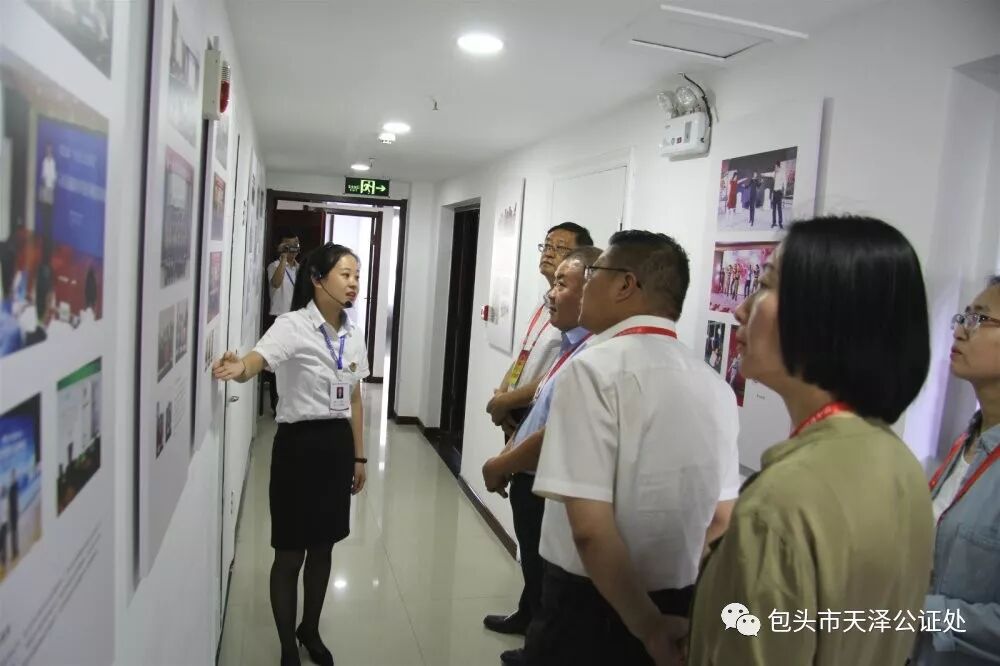 1 包头市昆都仑区人民政府党组成员赵太贤、包头市昆都仑区司法局党组书记、局长贺青、包头市天泽公证处党支部书记、主任李琨陪同包头市昆都仑区人大常委会副主任王巍一行实地视察了包头市天泽公证处办证大厅、党建工作室、行政办公区、公证宣传成果展架,听取了廊道文化介绍,查看了白云第二社区家事法律服务室、昆都仑区政务服务中心公证服务窗口工作的开展情况。视察结束后, 执法检查组在昆都仑区人民政府4楼会议室召开了座谈交流会,包头市天泽公证处党支部书记、主任李琨代表受检主体从公证处概况、“一法一条例”宣传、制度建设、队伍建设、基础设施和信息平台建设、现阶段存在的困难、问题及意见建议向执法检查组进行了汇报。执法检查组对昆都仑区人民政府贯彻落实“一法一条例”工作情况给予充分肯定,认为受检主体包头市天泽公证处执业规范,环境温馨,注重人性化和便民化,树立了公证行业的良好形象,为推进依法治国进程做出了积极贡献。 1 1 包头市昆都仑区人大常委会副主任王巍充分肯定了包头市天泽公证处在《公证法》执行宣传、制度建设、公证队伍建设和信息平台建设所作出的努力和探索,认为问题找得准确,建议提得中肯,希望包头市天泽公证处能坚守“天道酬勤 法泽惠民”的初心,为昆都仑区经济社会发展、社会和谐稳定做出更大贡献。 11