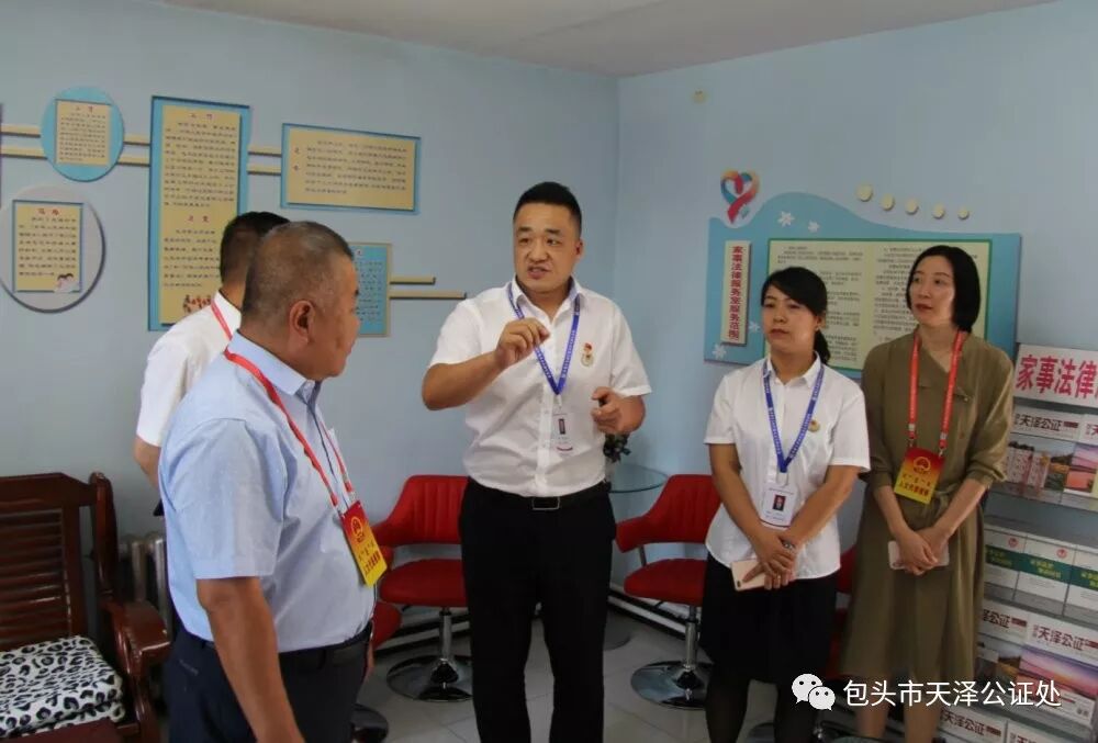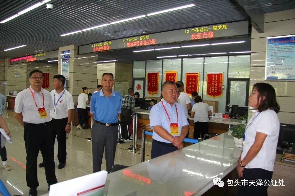 2019年8月15日,包头市昆都仑区人大常委会副主任王巍、昆都仑区人大法制委员会主任委员、昆都仑区人大常委会民族法制(科教文卫)工作委员会主任谭振华、昆都仑区人大法制委员会副主任委员高文通、昆都仑区人大常委会委员、昆都仑区人大常委会民族法制(科教文卫)工委委员刘文彦、昆都仑区人大常委会民族法制(科教文卫)工委委员李冠坤、高爱云组成的执法检查组莅临包头市天泽公证处检查《中华人民共和国公证法》《内蒙古自洽区公证条例》(以下简称“一法一条例”)贯彻实施情况。