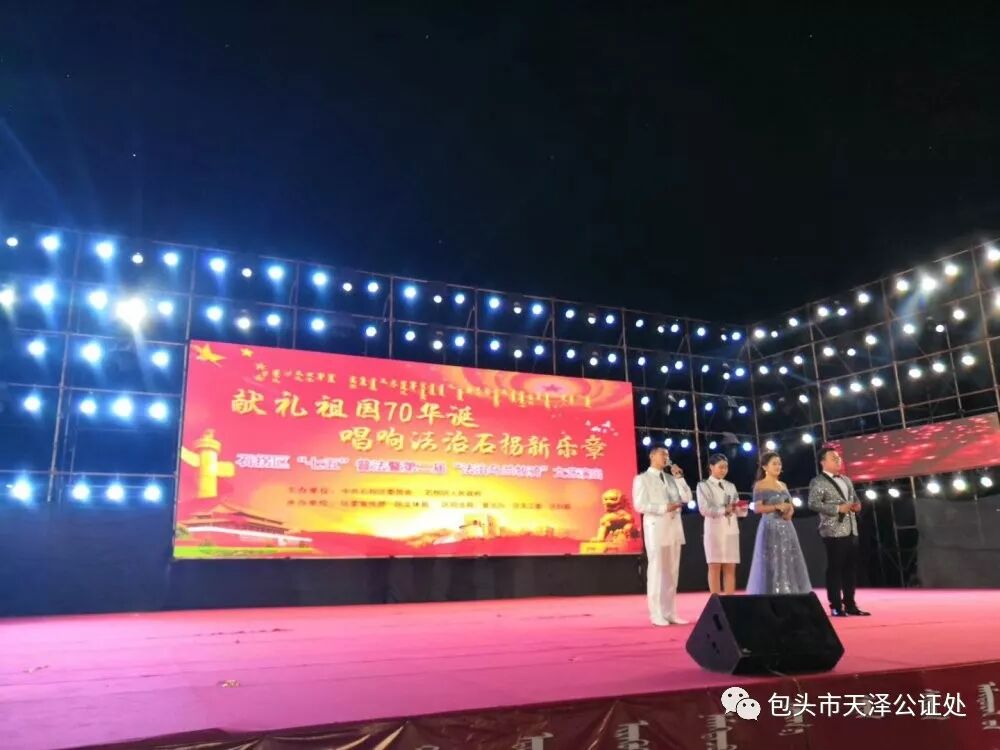 为庆祝新中国成立70周年,深入贯彻落实习近平总书记对乌兰牧骑事业发展的重要指示精神,进一步探索新时期乌兰牧骑事业发展方向及其定位,2019年8月22日,包头市天泽公证处选送的小品《公证那些事儿》参加了包头市石拐区司法局举办的“献礼祖国70华诞 唱响法治石拐新乐章”第二届石拐区“七五”普法暨”法治乌兰牧骑”文艺演出。