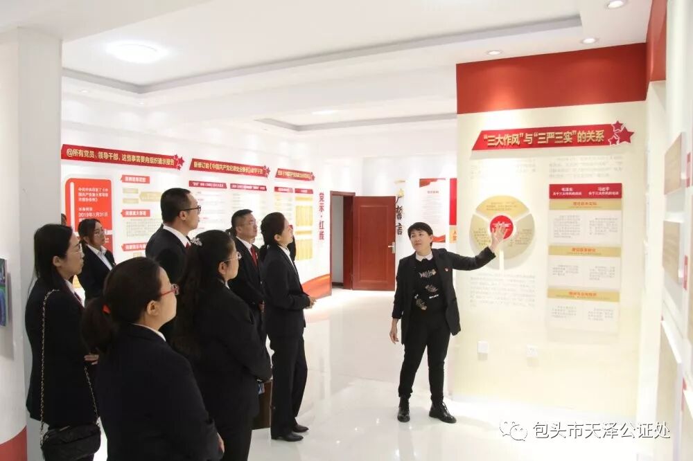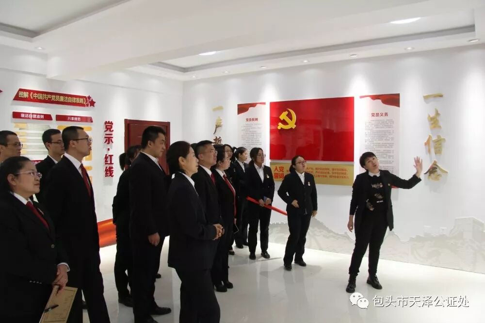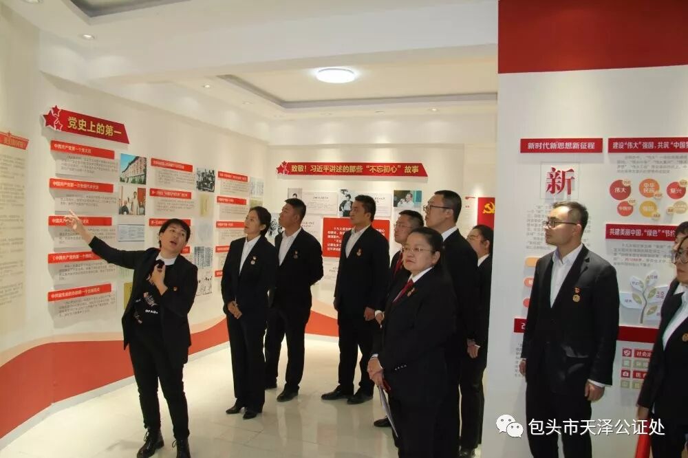 为全面推进“不忘初心 牢记使命”主题教育,加强基层党组织建设,创新党建工作思路,提升党建工作水平,2019年10月17日下午,包头市天泽公证处党支部与包头市昆都仑区人民法院第九党支部联合开展了“不忘初心 牢记使命”主题教育暨主题党日之走进包头市昆都仑区明日星城社区党群服务中心政治生活馆参观学习。