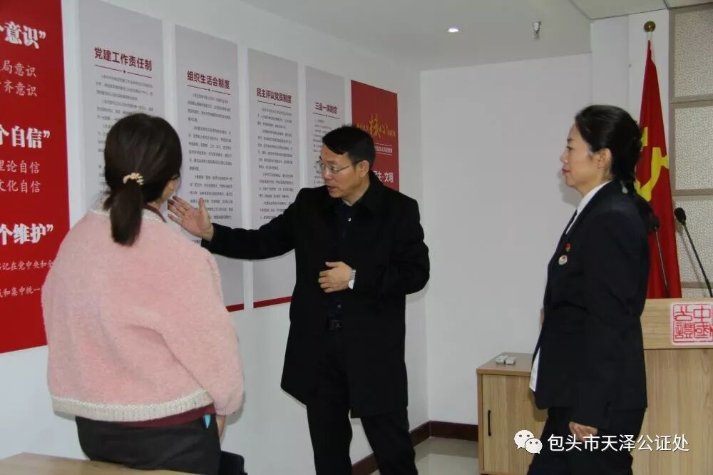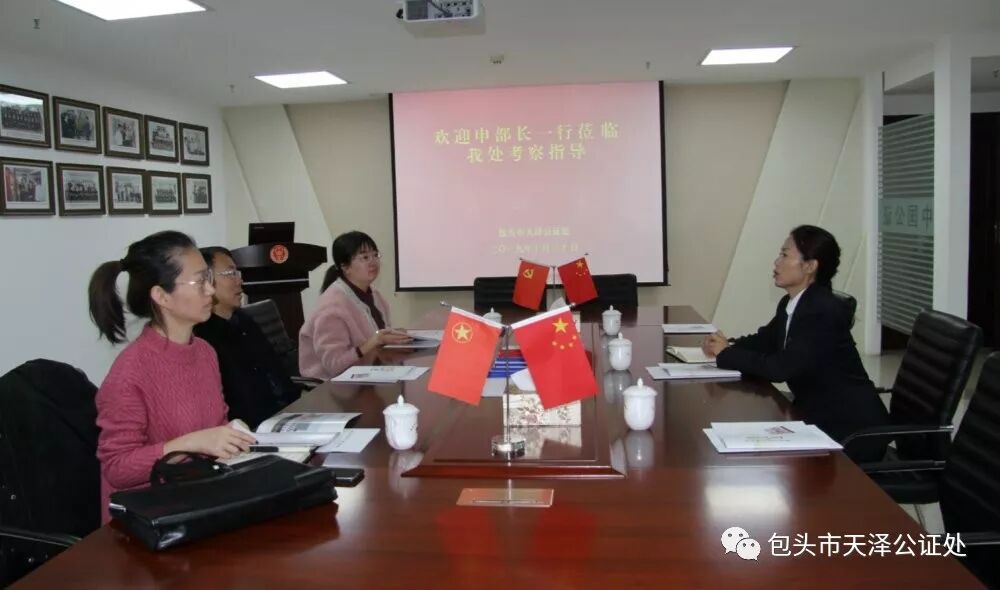 2019年10月30日下午,包头市昆都仑区区委组织部常务副部长申书厅一行3人莅临包头市天泽公证处,就党建工作进行调研指导。