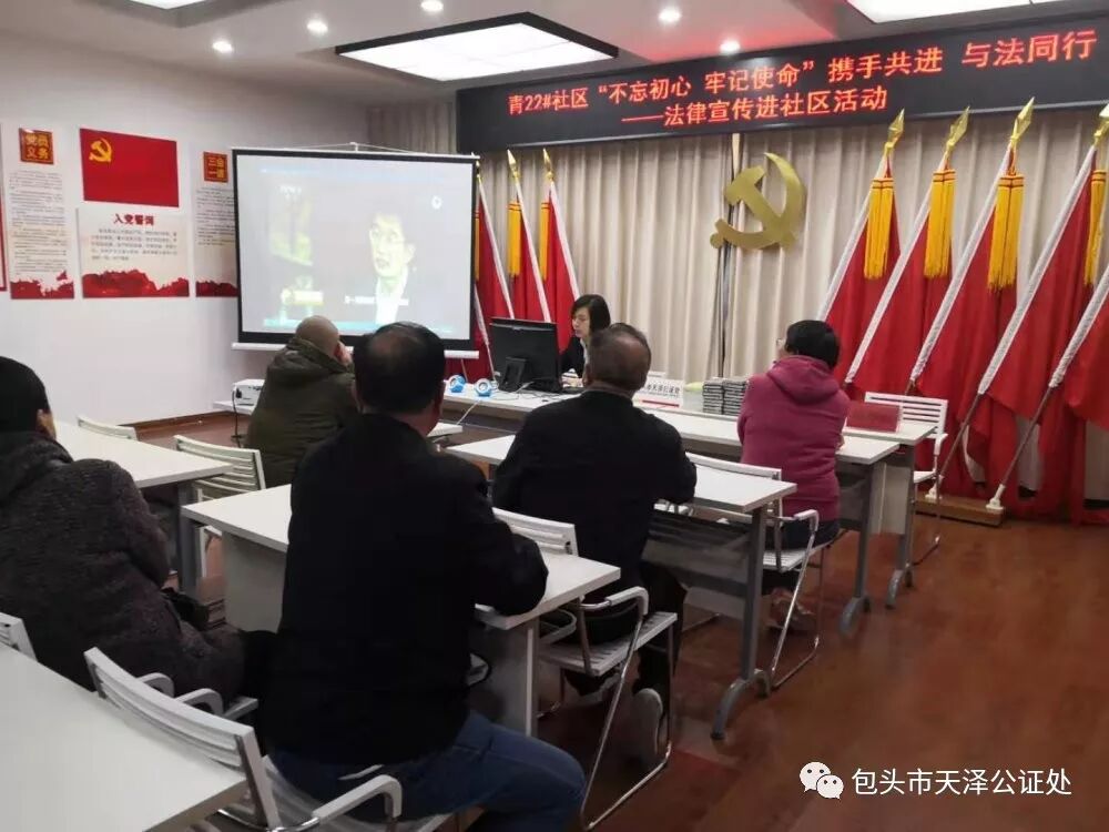 为进一步增强广大居民群众的法律素质,提升居民群众维权意识,让居民了解法律知识,学会用法律维护自己的合法权益。2019年11月6日,包头市天泽公证处业务三部公证员王凤娟来到青年路22号街坊居委会,为社区居民带来一堂以“意定监护”为主题的讲座。