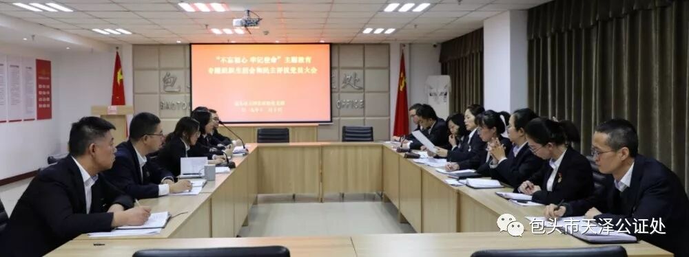 根据中共包头市昆都仑区区委《关于第二批主题教育单位基层党组织召开专题组织生活会和开展民主评议党员的通知》(昆教组发〔2019〕17号),2019年12月10日,包头市天泽公证处党支部召开了“不忘初心、牢记使命”主题教育专题组织生活会和民主评议党员大会。15名党员参加了会议。