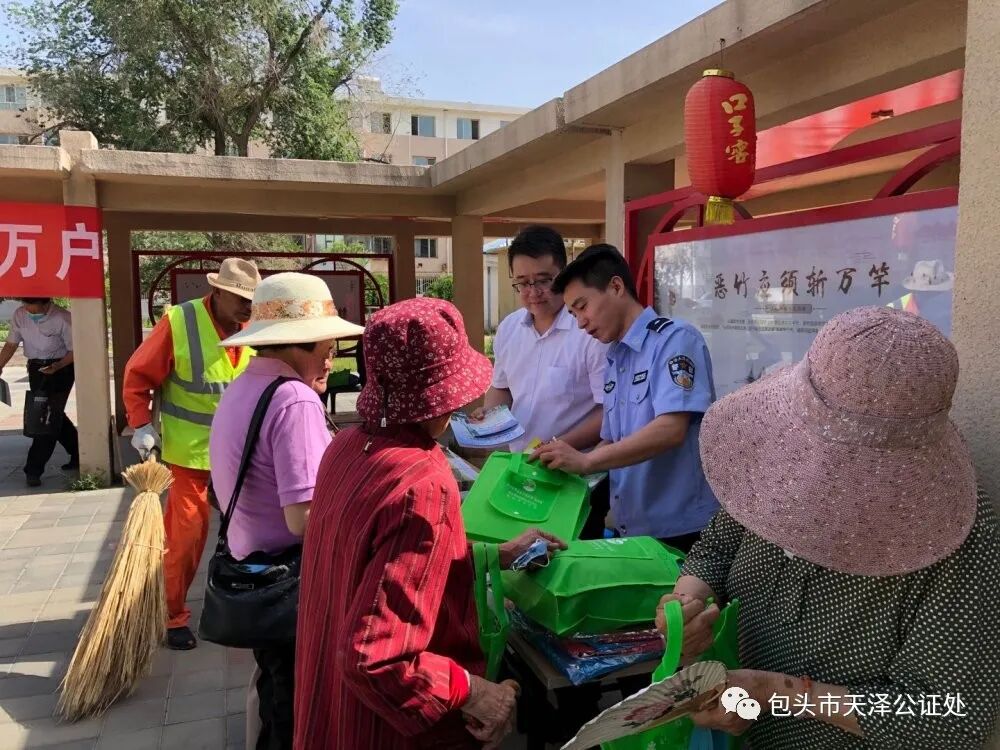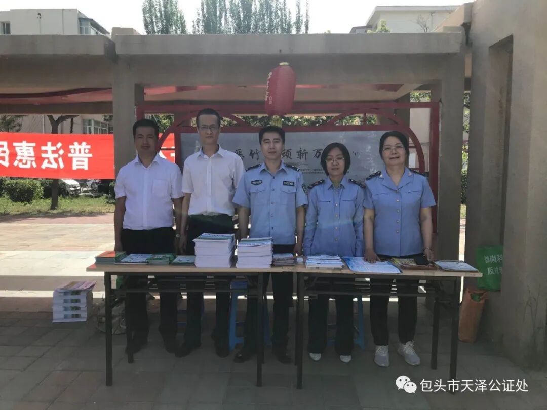 为了加强法治宣传教育,提高居民法律意识,满足社区群众对法律服务的需求,促进和谐家庭、和谐社区、和谐社会建设,2020年6月5日,包头市天泽公证处业务二部公证人员联合包头市昆都仑区司法局阿尔丁司法所走进青松小区社区开展普法宣传活动,真正将“天道酬勤 法泽惠民”服务精髓落到实处。