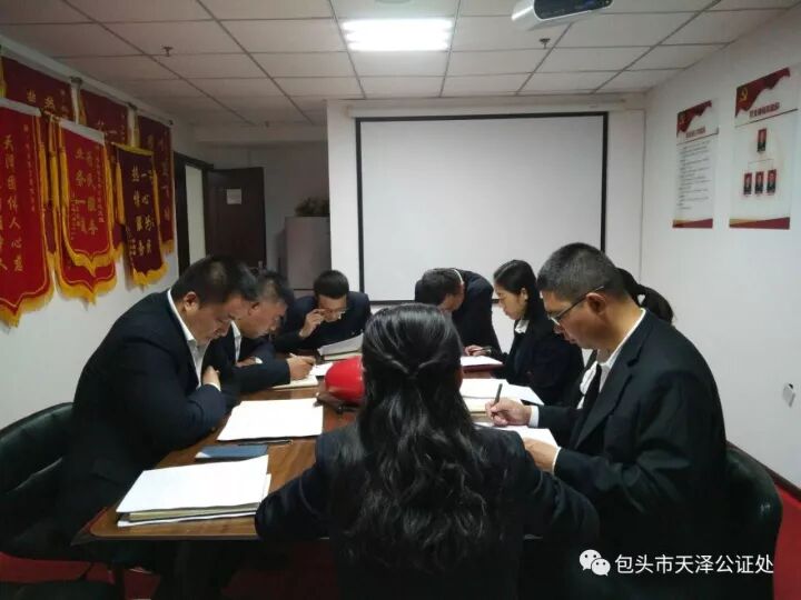 认真学习宣传贯彻党的十九大精神,是当前和今后一个时期各级党组织和广大党员干部的首要政治任务和重大政治责任。为深入学习宣传贯彻党的十九大精神,在十九大精神指引下推动我处公证工作深入开展,2017年10月30日,包头市天泽公证处党支部组织召开党员大会,认真学习了习近平总书记在党的十九大开幕会上的报告。会议由党支部书记李琨同志主持,全体党员参加了此次会议。